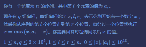 首先第一件事是最大子段和信息是可以由 pre suf ans sum 合并来的,现在考虑在线段树上获取其信息即可。
