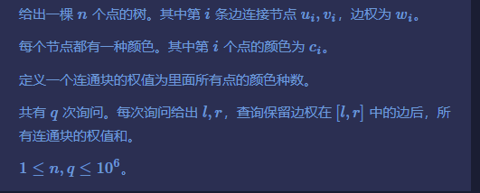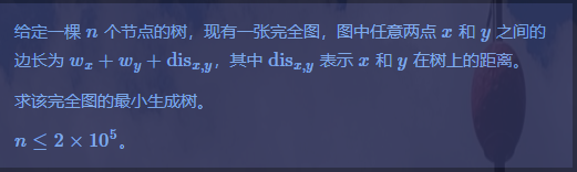 Boruvka,之后在换根 dp 计算每个点到的最小次小(依不同颜色分开)之后连边。是 \(O(n\log n)\)。