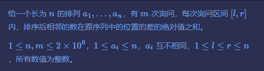 对序列分治,跨过区间的点对可以拆为两边到中心,这样就降低了问题的维度(?)。具体地说,对两边分别扫描,需计算值相邻数(如果在 \(i,j\))贡献。如果已知左端点,判断是否中间被另外一边的数界开,如果是贡献为 \(|2mid-i-j|\),否则贡献是 \(|i-j|\),这个左端点分界显然是区间,扫描线的时候加减贡献之类即可。最后是 \(O(n\log^2n)\),据有人说可以 \(/\log\log n\)。