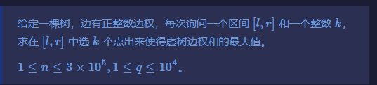 核心问题是根据最值分治考虑发现封闭序列是无交或包含的。然后向上合并答案:每个封闭区间保留 \(x\) 个的答案 \(y\) 应该是凸的,前面忘了中间忘了直接合并即可。