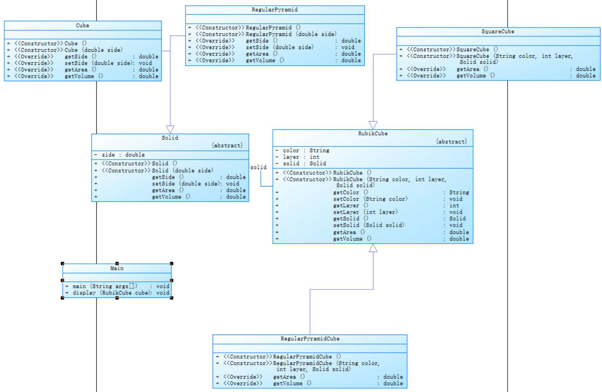 这两次题目集总体而言考察的是类的设计的能力而并非复杂的算法,因此难度降低了许多。类的设计往往离不开类与类之间的关系,使用封装,继承与多态以及软件设计的七大原则可以大大提高我们类设计的质量。第八次题目集主要考查了前面点线面问题的重构,雨刷程序功能的扩展,这两道题目都考察了对前面已经写过的程序进行重构以使其满足新的需求,这就需要熟练的使用继承与多态,第一次航空货运管理系统的设计主要考察了单一职责原则、里氏代换原则、开闭原则、合成复用原则。第九次题目集主要考察的仍是继承与多态的使用,魔方问题便可以充分体现,除此之外还考察了容器类的使用也就是点线面问题再重构(容器类)还有软件设计的七大原则,这点在第二次航空货运管理系统上可以体现。在类的设计中运用软件设计七大原则虽然有些挑战但却大大提高程序的可读性,可维护性,可复用性,重构的时候可以为我们提供很多的便利。