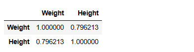#观察身高体重的线性关系 WeightHeight_data[['Weight','Height']].corr() #相关系数达到0.796213,可以看出运动员的身高体重基本附和线性关系