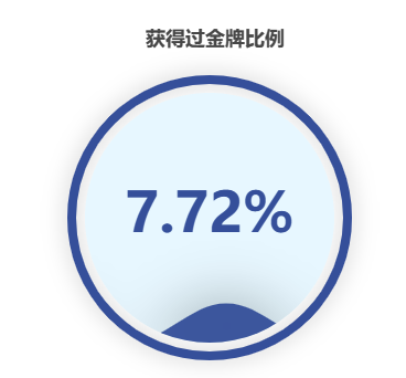 获得过奖牌比例和获得过金奖比例这两个结果可知,获得过奖牌比例为20.93%而获得过金奖比例则更加少只有7.72%。