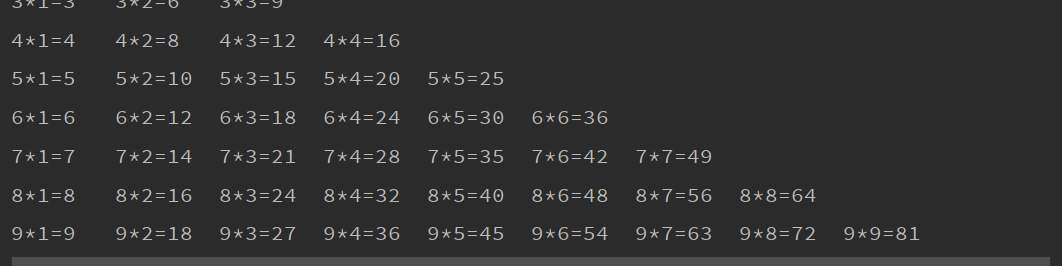 System.out.print(i+"*"+j+"="+i*j+"\t");