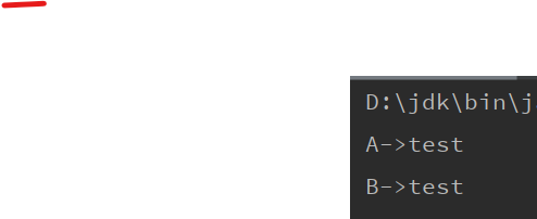 System.out.println("B->test");