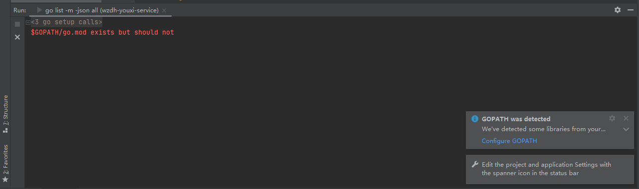 开启模块支持后,并不能与$GOPATH共存,所以把项目从$GOPATH中移出即可