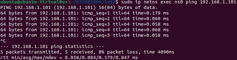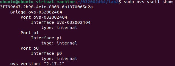 a) /home/用户名/学号/lab2/目录下执行ovs-vsctl show命令、以及p0和p1连通性测试的执行结果截图