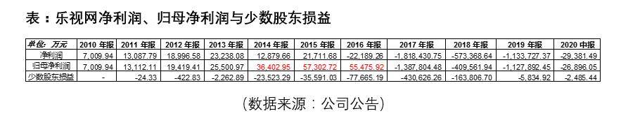 但是,乐视网的少数股东损益特别神奇!