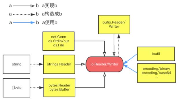 - net.Conn, os.Stdin, os.File: 网络、标准输入输出、文件的流读取