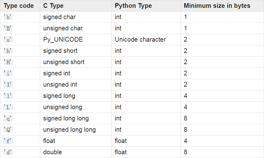 array.array(typecode[, initializer])
