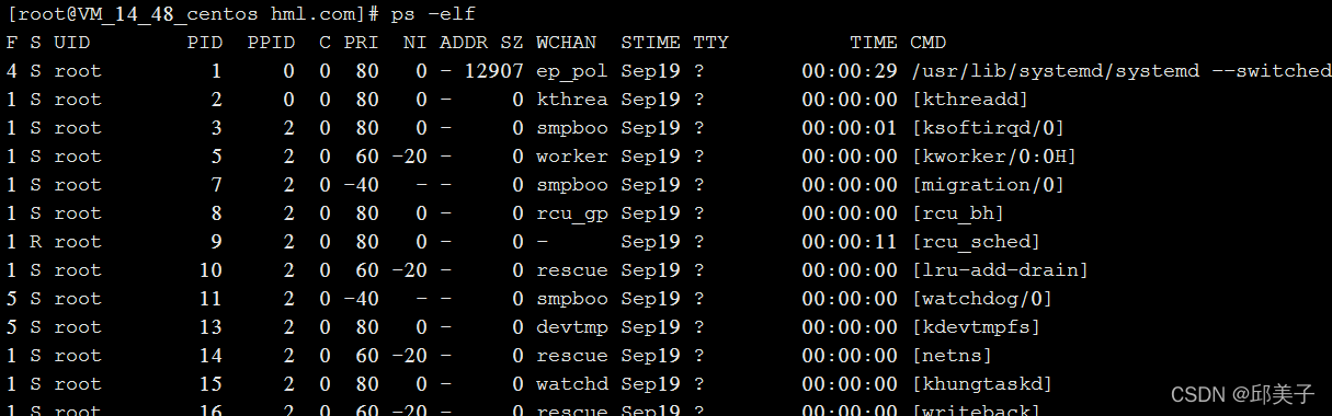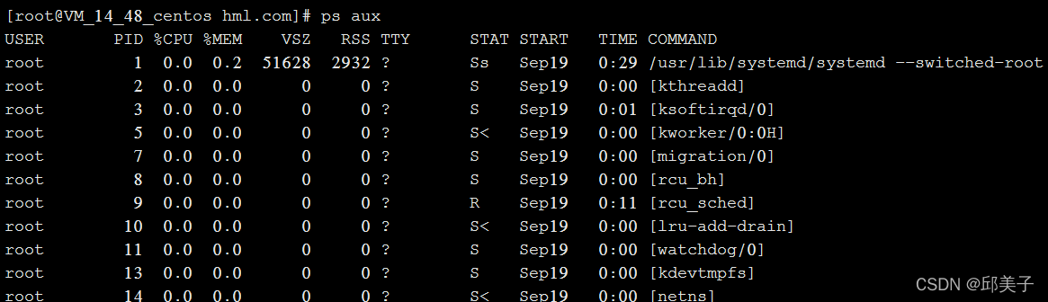 STAT:显示了进程当前的状态,如S(休眠)、R(运行)、Z(僵死)、<(高优先级)、N(低优先级)、s(父进程)、+(前台进程)。对处于僵死状态的进程应予以手动终止。