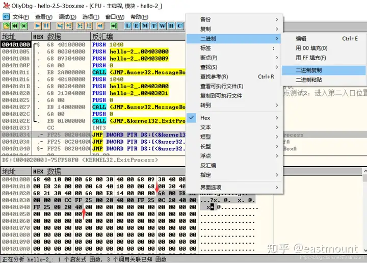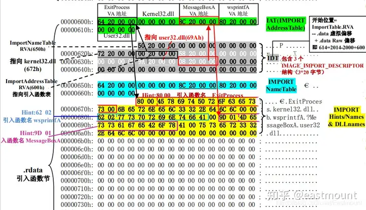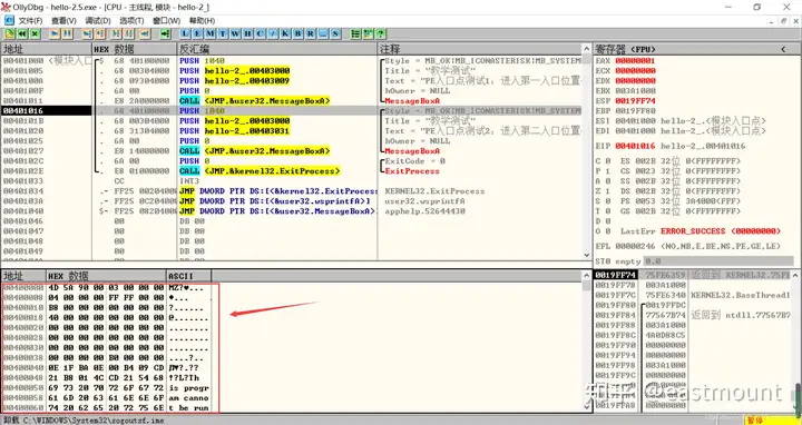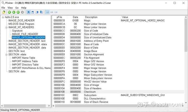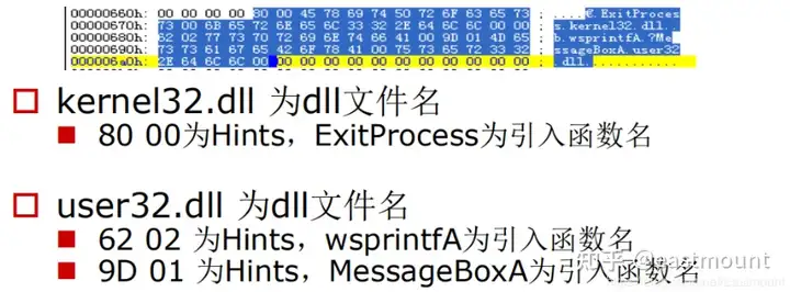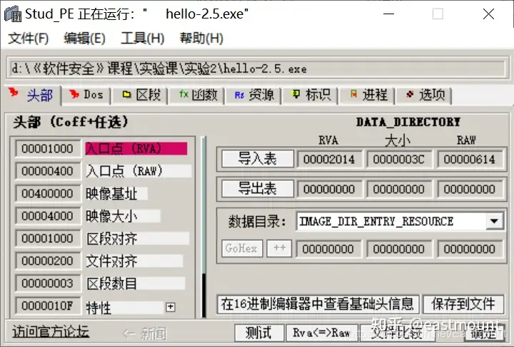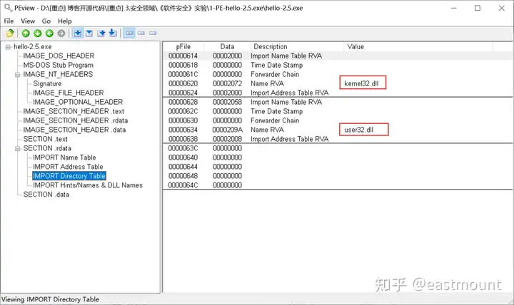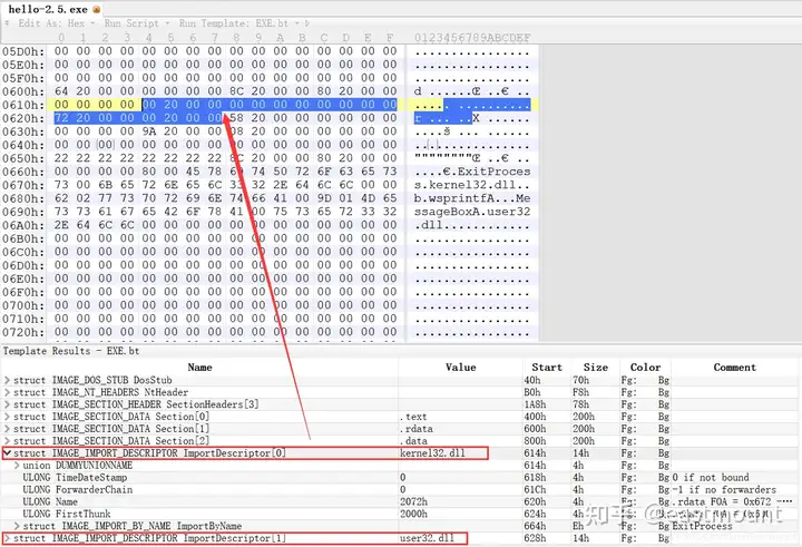 - 结合hello-2.5.exe熟悉PE文件头部、引入表的结构,熟悉函数导入的基本原理