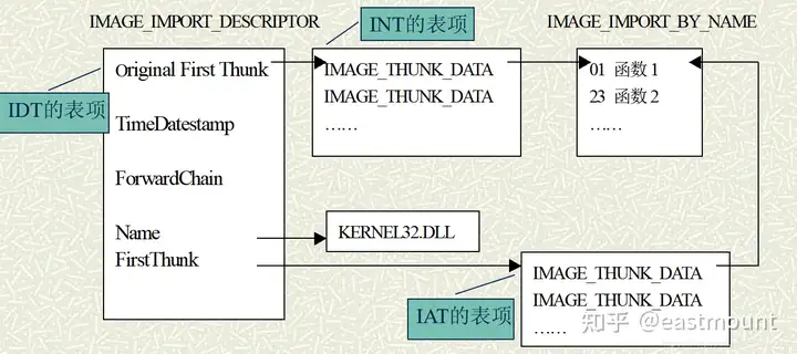 在内存中的引入表结构:IMAGE_IMPORT_DESCRIPTOR