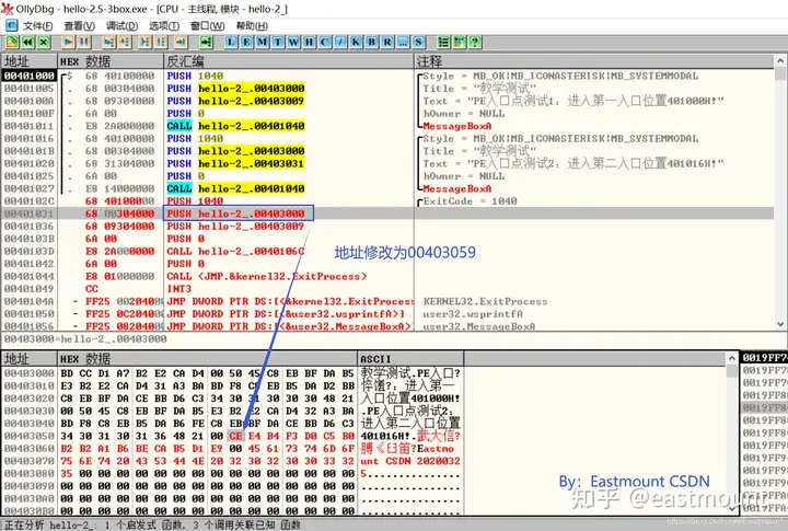 第三个窗口标题的地址修改为“00403059”。