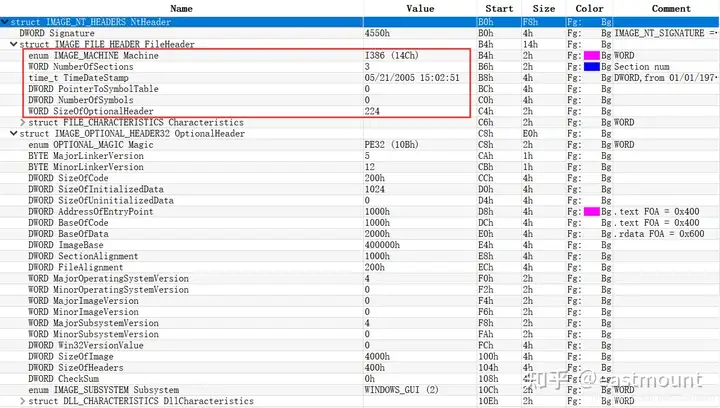 PE文件可选文件头224字节,其对应的字段信息如下所示: