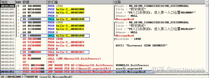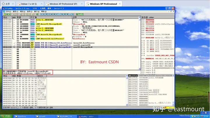 之后我在虚拟机的XP环境下进行了相同的实验,其值为77D507EA,完全一致。注意,user32.dll来自XP操作系统。