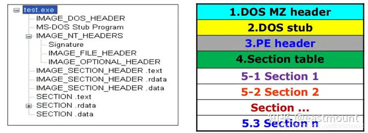 PE文件结构如下图所示,我推荐大家使用010Editor工具及其模板来进行PE文件分析。