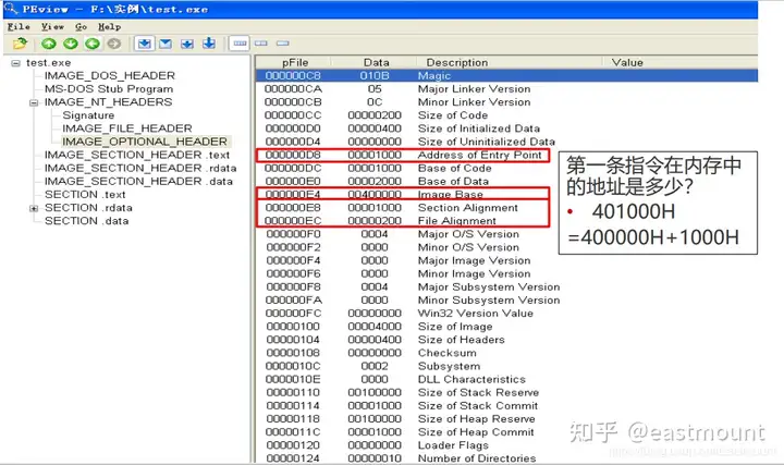 比如PE文件头(IMAGE_NT_HEADERS)中,AddressOfEntryPoint为1000h,基地址为400000h。