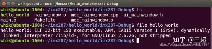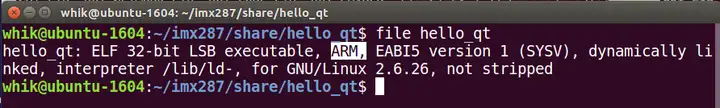这样,就生成了hello_qt的可执行文件,可以使用file命令看一下文件类型: