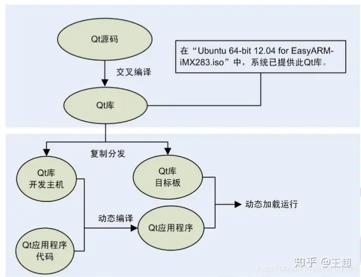嵌入式Qt,即QtE,属于Qt Embedded Linux 分支平台。Qt/E 所面对的硬件平台较多,当开发人员需要在某硬件平台上移植 Qt/E 时,需要下载Qt 源代码,利用交叉编译器编译出 Qt 库。接着需要将 Qt 库复制两份,一份放置在开发主机上,供编译使用;一份放在目标板上,供运行时动态加载使用。