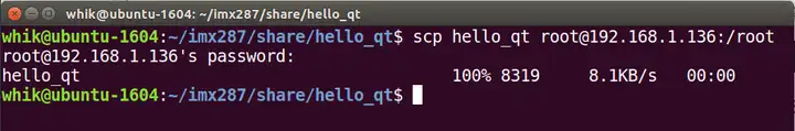 使用scp或者NFS共享目录的方式把文件传输到开发板: