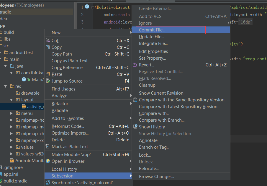 二、Android Studio项目关联SVN资源库及加入忽略文件