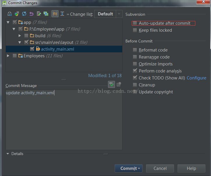 到眼下为止仅仅是将项目同SVNserver建立了联系。并没有将代码提交到SVNserver上去;怎样提交呢,事实上非常easy,仅仅需点击SVN相关操作button里的commit即可了(上图SVN相关操作button左起第二个button);