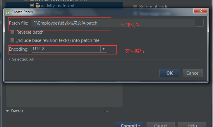 在commit button以下另一个是create patch这个选项试一下其作用: