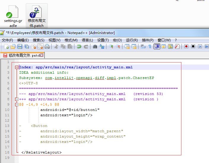 应该明确是创建一个补丁文件基本的作用就是能够查看改动的地方: