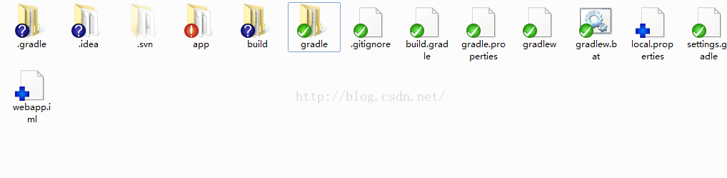 红色感叹号(本地代码与库没有保持一致): --这说明本地代码跟库上没有保持一致。假设用户想修复,能够将带红色感叹号图标文件删除,直接update就可以。 灰色向右箭头(本地改动过) --本地代码没有及时上库。