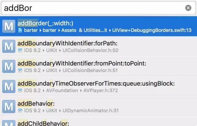 是否忘了你在寻找的东西在哪里?Xcode 同意你通过快捷键 ⌘⇧O 在整个项目内进行模糊搜索。