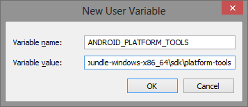 Variable Value: %Path%;%ANDROID_PLATFORM_TOOLS%;%ANDROID_TOOLS%