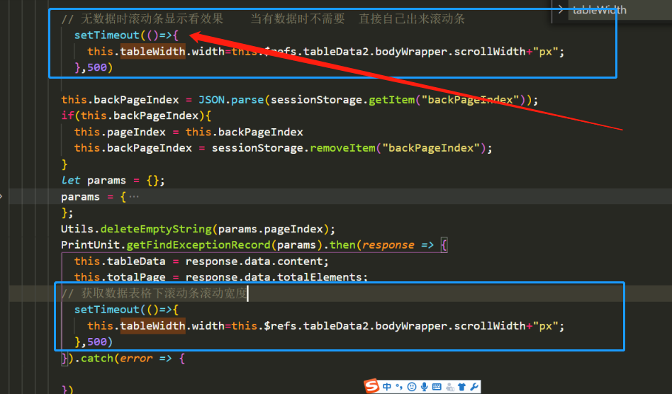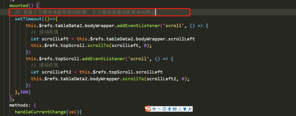 2.监听表格宽度,并给元素和滚动条元素绑定滚动事件: