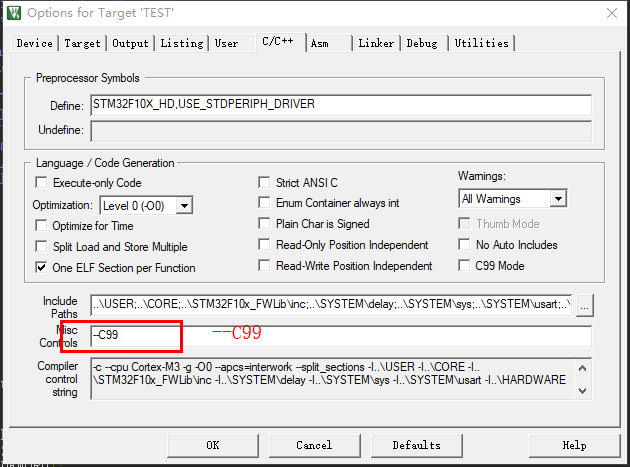 3.将文件添加到自己的工程中,并设置keil5支持C99