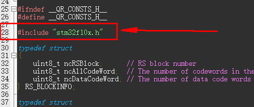 4.在qr_consts.h中添加头文件,支持 uint8_t 类型