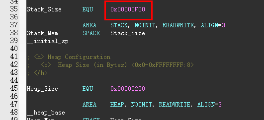 8.最后在 startup_stm32f10x_hd.s中 调整堆栈大小,初始值 0x00000400 调整值 0x00000F00