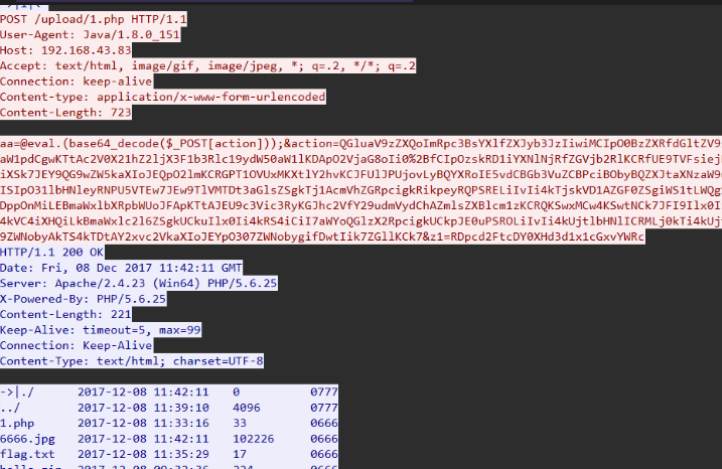 对流量包进行过滤分析,貌似上传了文件,返回包里是有flag.txt的,但是直接去分离出来没有密码,解压不了