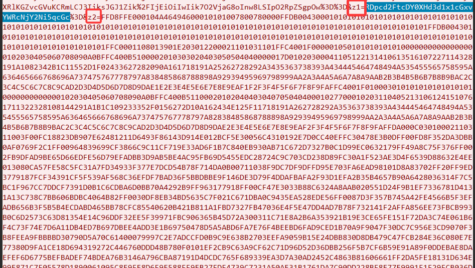 后面继续翻流量包,到tcp.stream eq 7的时候发现一堆数据,z1是上传路径,z2是jpg格式的16进制数据