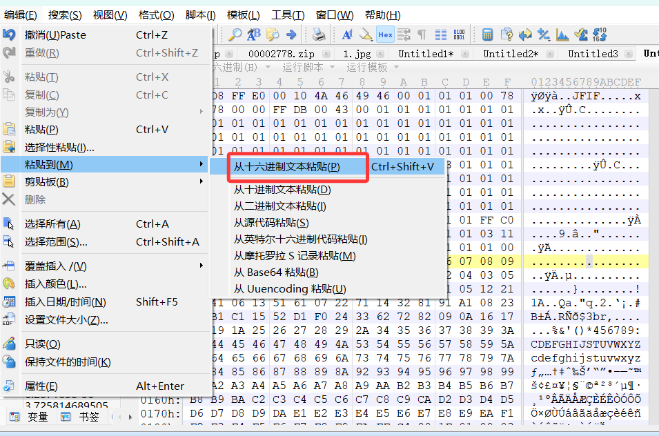 直接粘贴到010就不用又去找十六进制转jpg的在线网站了
