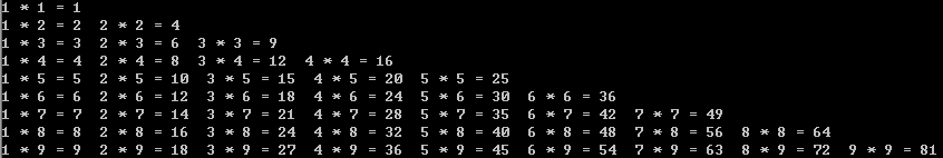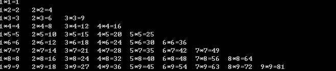 print (str(rol)+"*"+str(row)+"="+str(row*rol),end="\t")