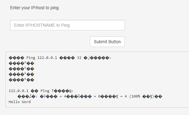 尝试在地址后面添加其他内容进行执行,如 127.0.0.1|echo Hello Word,122.0.0.1||echo Hello Word,127.0.0.1&echo Hello Word,127.0.0.1&&echo Hello Word