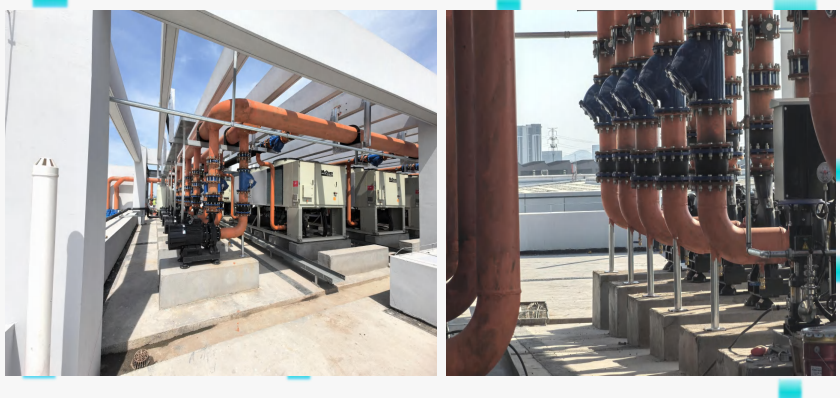 苏州凌云光工业智能技术有限公司项目:项目设计制冷量4924KW,采用特灵2台400RT磁悬浮及1台600RT变频离心机,匹配8台175流量的冷却塔。经过全年逐时负荷模拟,总制冷量3716411KW,总能耗687137KW,综合SCOP值5.41,冬季采用3套1400Kw力聚真空燃气热水锅炉,合计4200KW通过阀门切换进行末端供热。这个项目采用先进的智能化控制系统,确保能效SCOP大于5.4。