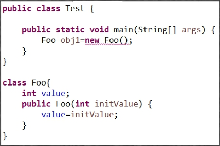 以上代码无法编译因为如果类提供了一个自定义的构造方法,将导致系统不再提供默认构造方法。