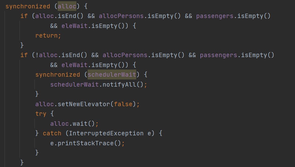 没有增加电梯退回请求的机制时,调度器在收到输入结束信号并分配完请求后自动结束,增加退回机制后出现了电梯在输入结束,调度器为空,送完自己的序列后结束了。但是其他电梯未结束并将请求退回给了调度器,调度器将这些请求分配到了已结束的电梯,这些请求就不能再被送达了。