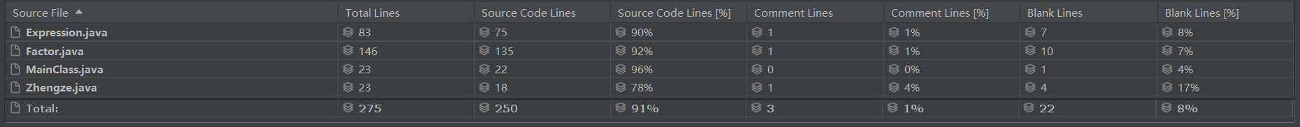 由上图可以看出,Factor.Factor(String)和Factor.toString()这两个方法的实现不太优美。究其原因,在Factor.Factor(String)中使用的整数(包括系数、指数)读入方法较为原始,没有整合成更简洁的模式。在Factor.toString()中使用了大量的if-else判断系数、指数的特殊情况(如是否为0,是否为1等等),为一些基本的优化功能服务。