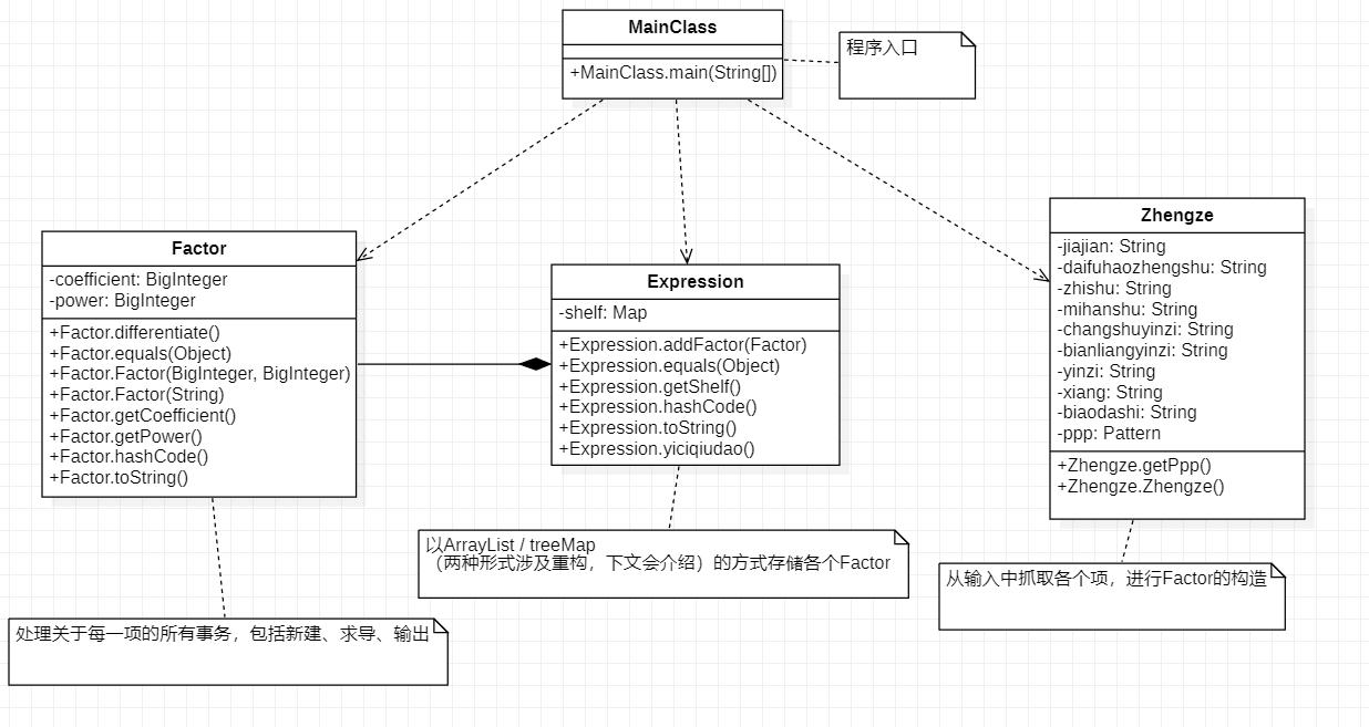 第一次作业,采用正则表达式抓取每一项,通过乘法运算将每一项处理为一个Factor对象,存入容器之中。