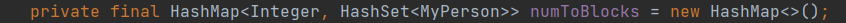 为了描述连通分量,我在NetWork中加入了numToBlocks属性进行存储,采用了HashMap。其中每个连通分量都有唯一确定的序号,而连通分量的具体实现就是一个包含了多个Person的HashSet。为了能够让每一个Person能够方便地查询自己所在的连通分量的序号,我又在Person中加入了blockNum属性进行记录。