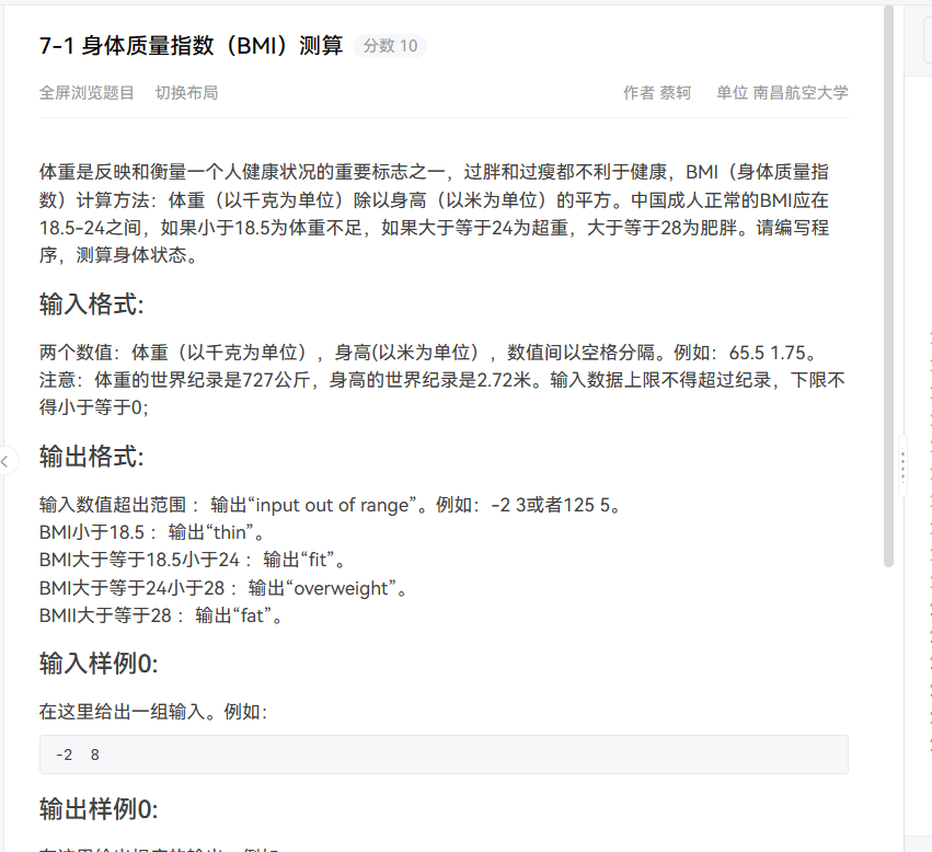 第一题:“身体质量指数”,难度(个人感觉):简单