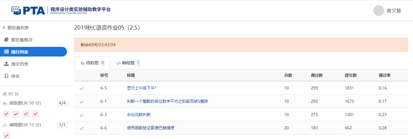 1.1.4PTA提交列表及说明