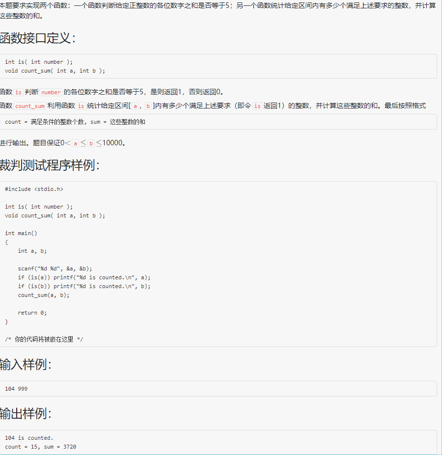 数据表达:定义了7个整型变量m,n,a,b,sum,count,i.全部都是局部变量,只能在一定范围内使用,sum为各个位数的数字之和,count为满足条件的整数个数
